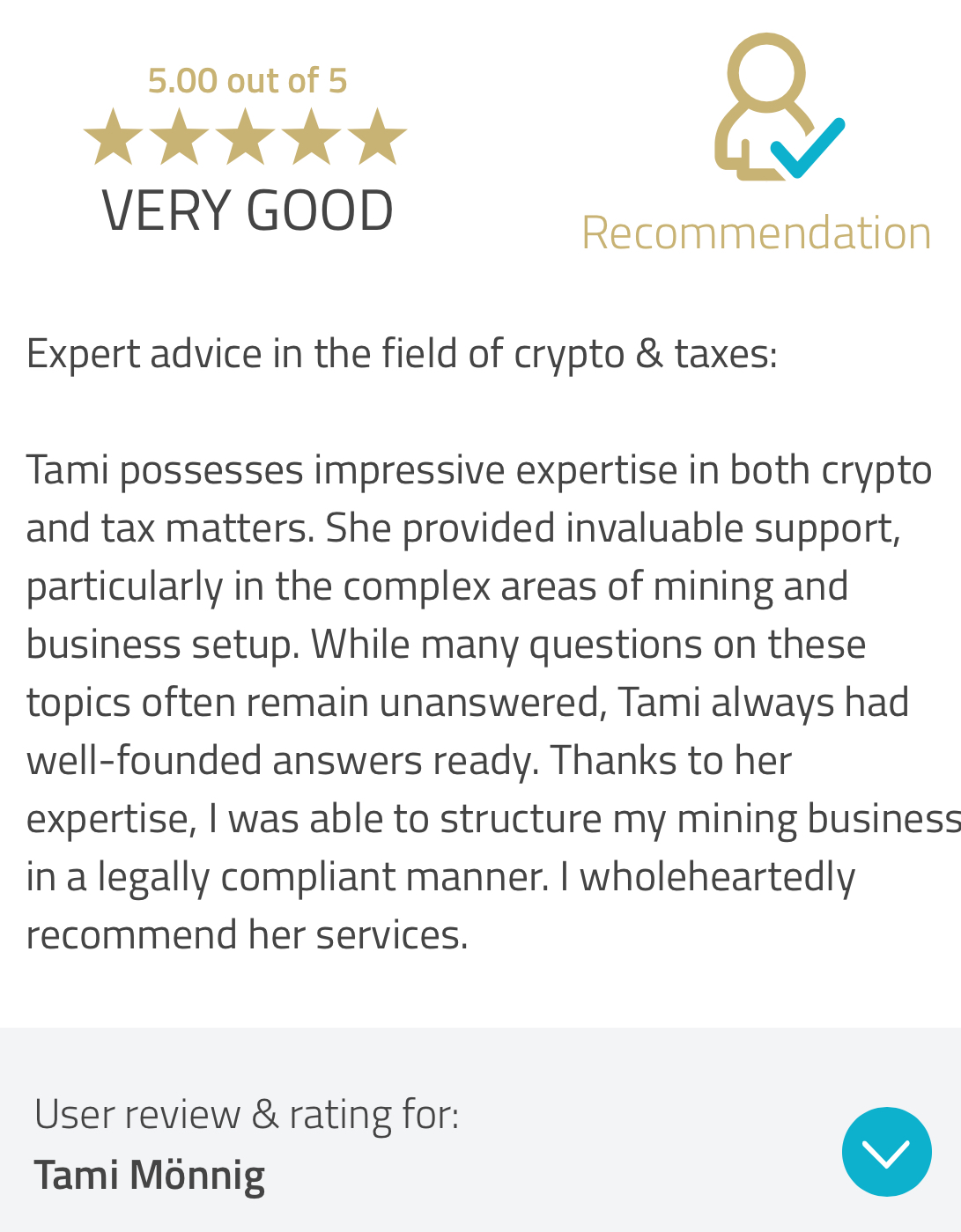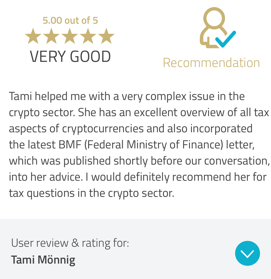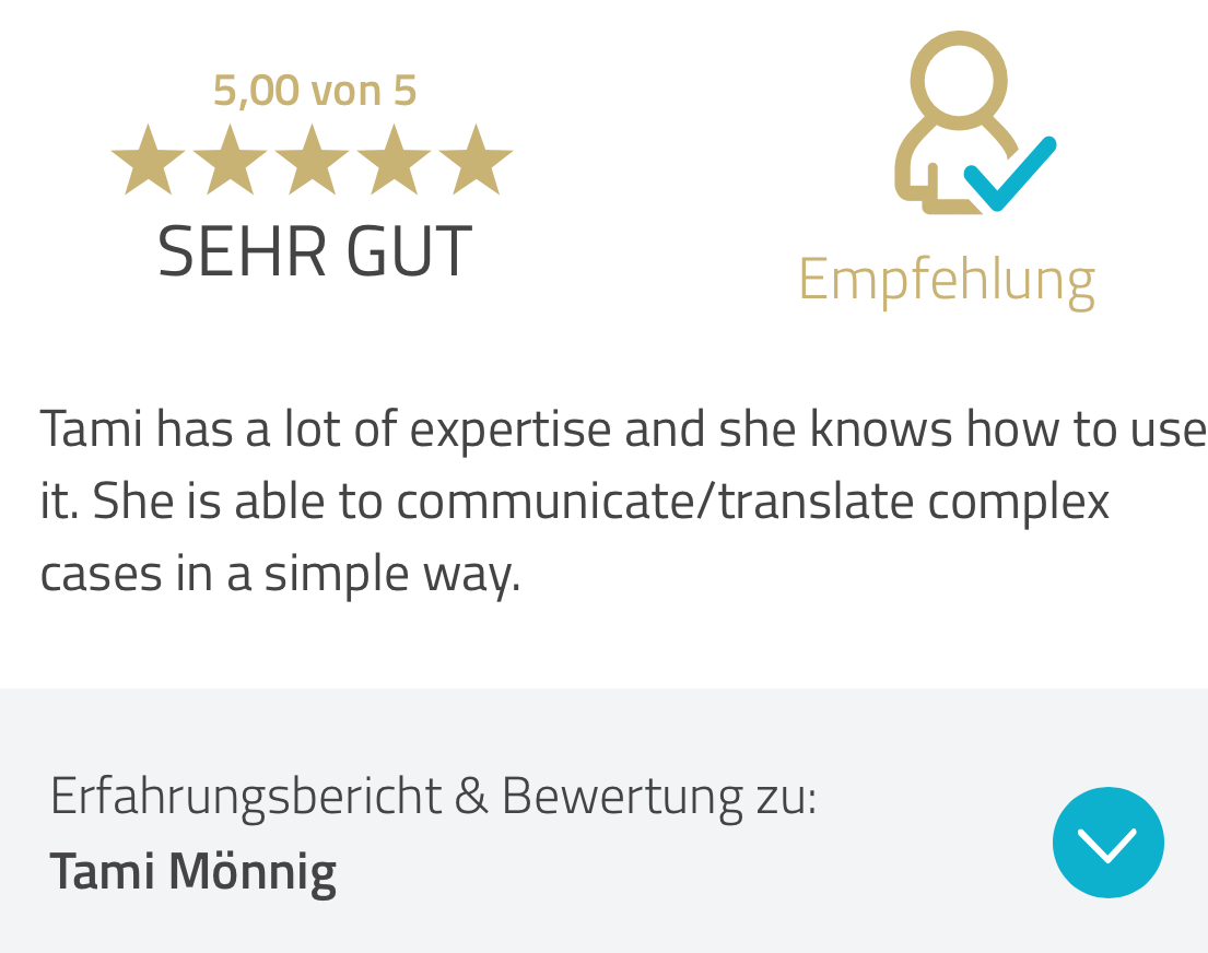 Additional: Her international expertise in cross-border transactions provided her with the essential tools to advise you on your tax questions in that regard as well and how you can use your personal situation even internationally to your advantage. And most importantly, we work transparently, honestly and clearly. No grey areas, no false promises – just results you can rely on.